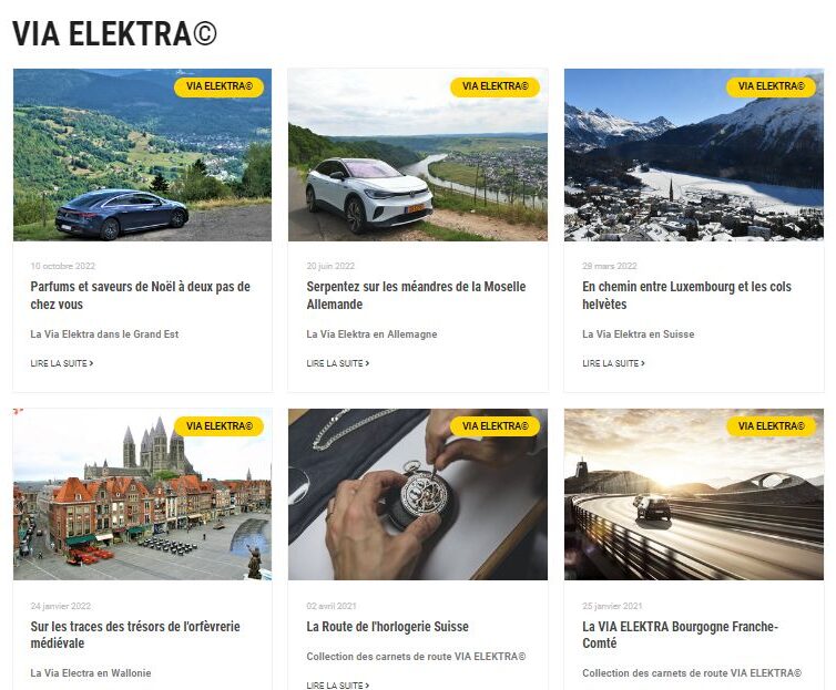 Chaque voyage y est présenté étape par étape, avec nos conseils, photos et suggestions pour rouler sereinement en voiture électrique.
